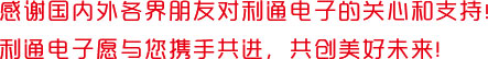 我相信,通過利通新網站這一平臺,能夠進一步加深廣大新老客戶對利通的了解和信任,能夠進一步增進新老合作伙伴友好關系的發展,能夠促進利通電子實現“創新創優服務社會,增收增效回報股東”的企業愿景!
